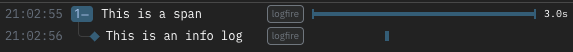 1. Any spans or logs created inside the with logfire.span(...): block will be children of that span. This lets you organize your logs nicely in a structured tree. You can also see this parent-child relationship in the console logs based on the indentation.