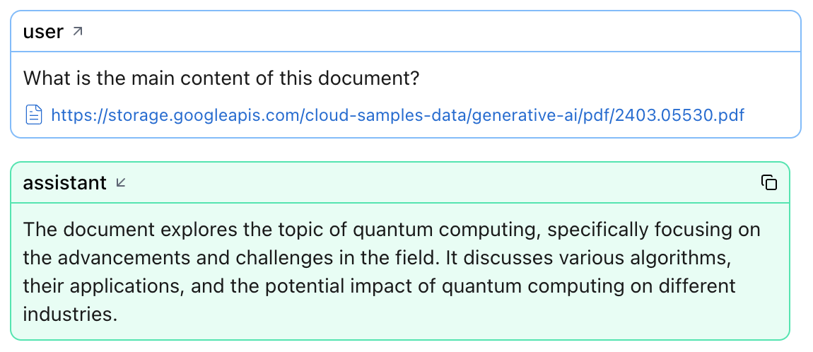 When a prompt includes a file, binary, blob, or URL, Logfire attaches a preview so you can verify exactly what the model received.