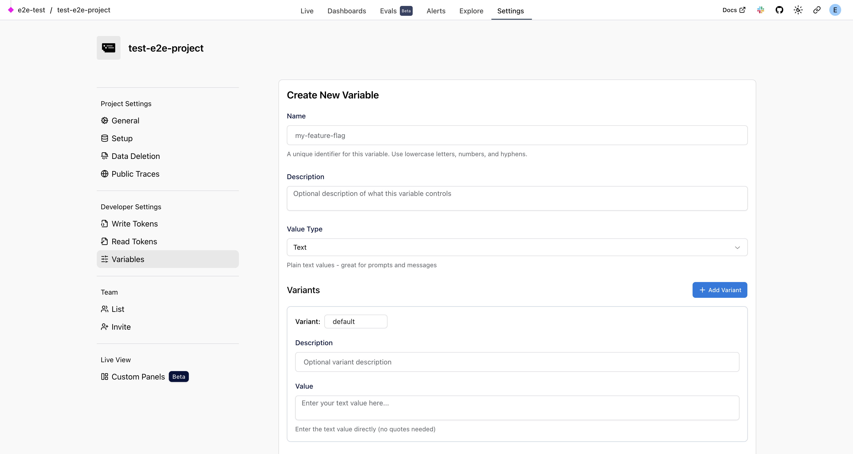Each variable can have multiple variants—different values that can be served to different users or traffic segments.